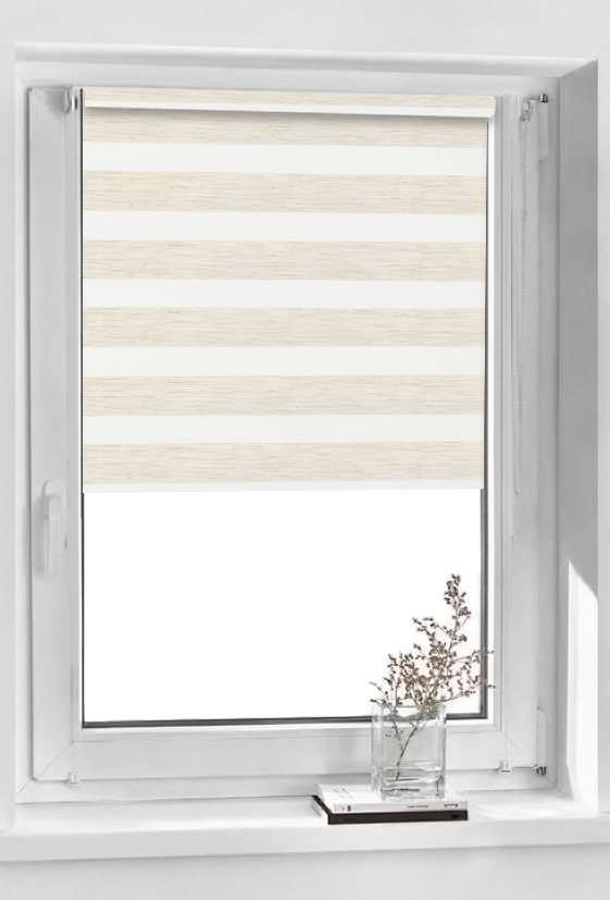 Roletele Day & Night se diferentiaza de celelalte tipuri de rulouri prin materialul special ale carui benzi pline si goale se intercaleaza pentru a lasa sau obtura lumina, fara a fi necesara ridicarea totala a ruloului ca in cazul roletelor clasice.